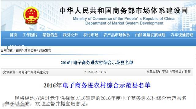 被列为国家电子商务进农村综合示范县,