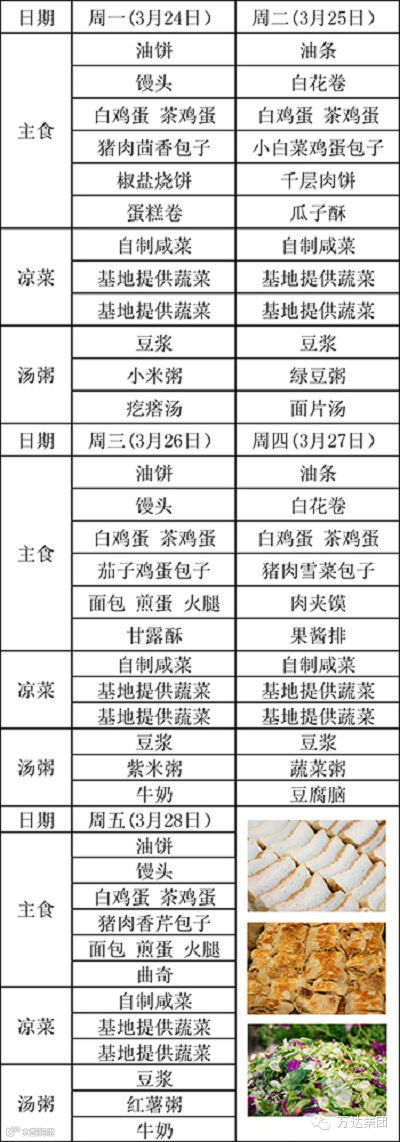 每天每顿凉菜、热菜、水果、酸奶样样不少,而且都是免费,重要的是,全部来自万达的基地特供。