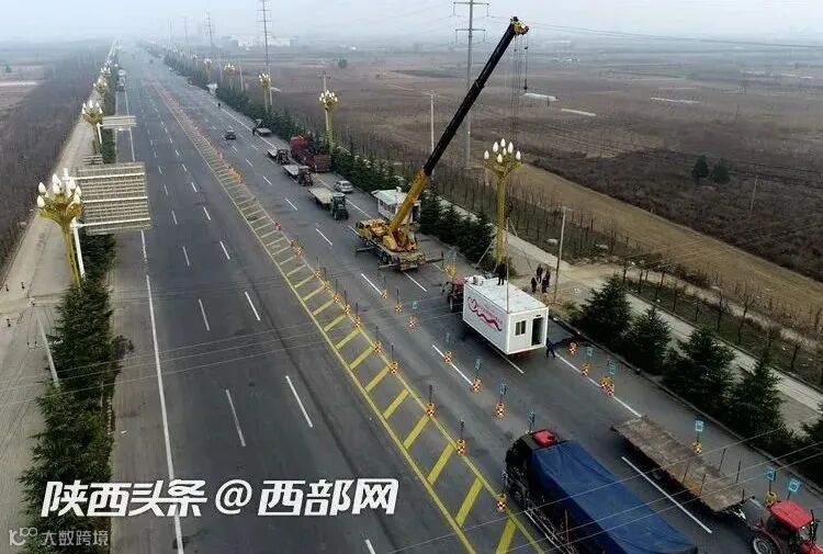 陕西一高速公路出口外设置的疫情防控检查点正在撤除。