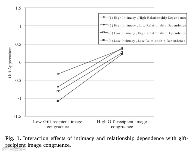 论文里的交互作用图(下图)展示了这个规律:当“亲密感高+关系依赖度高”时(比如老夫老妻、热恋期),“礼物-送礼人形象一致性”的负面影响会减弱——在之前“全按你的喜好送”会减分,但此时加一点你的特色,反而会加分。比如你喜欢打篮球,送她“印着你们合照的篮球造型钥匙扣”(既符合她喜欢可爱物件的形象,又有你的爱好元素),她会觉得“这是我们独有的回忆”。