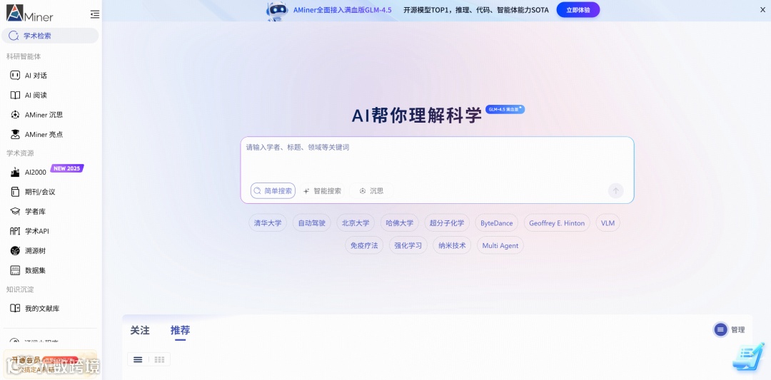 AMiner现已全面接入满血版GLM-4.5,