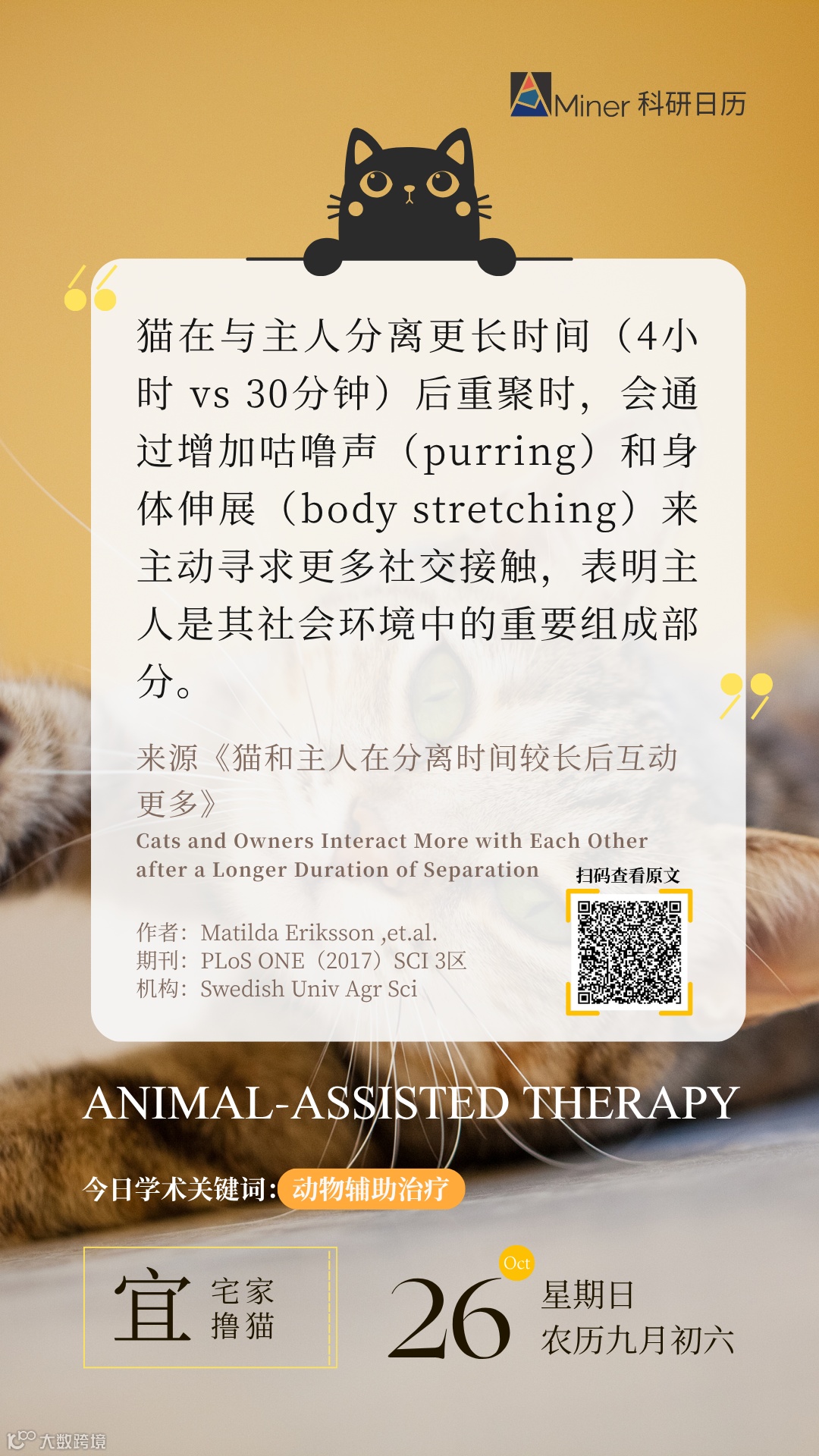 【AMiner 科研日历】你的猫真的想你吗?今日学术关键词:动物辅助治疗