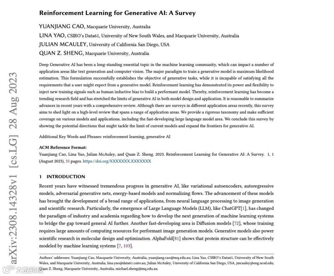 📖今天就让我们用ChatPaper读一下「Reinforcement Learning for Generative AI: A Survey」!了解强化学习在生成式人工智能中的应用吧!