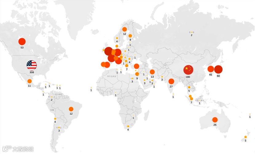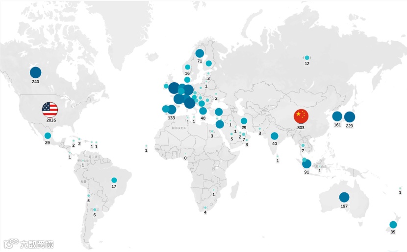 全球机器人学科的研究机构分布: