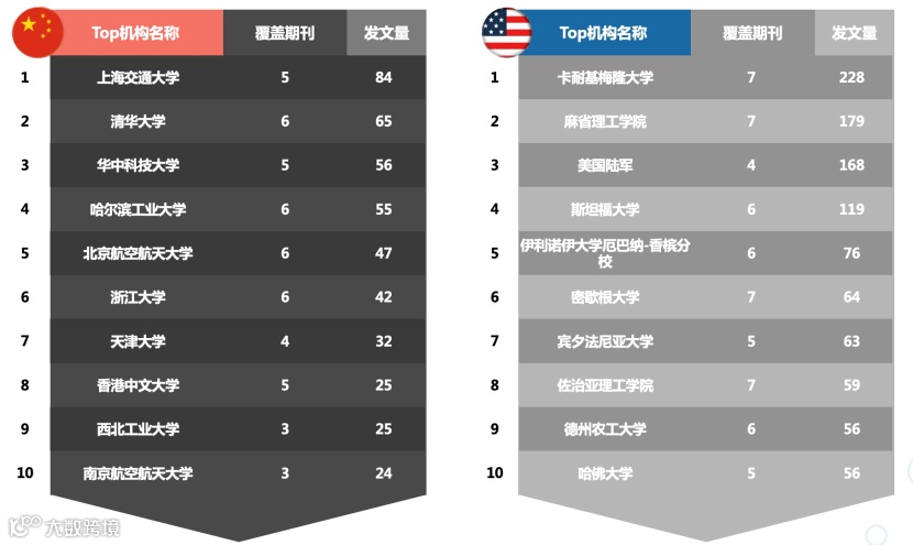 中美机器人学科Top机构: