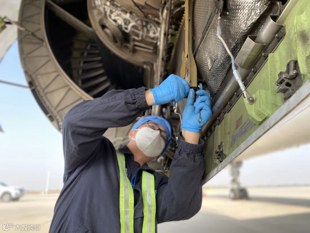 维修人员进行飞机发动机检查