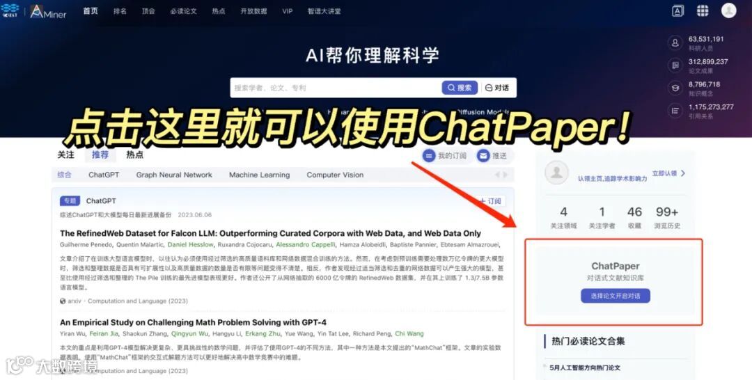 AMiner网站目前已经全新升级,推出了ChatPaper,你可以选择网站中的已有论文或者自行上传论文,来让ChatPaper帮你读论文!