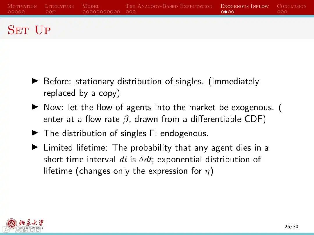 本文还考虑了对基准模型的诸多扩展,例如非对称均衡情形,和外生的婚姻市场进入者情形。这些扩展对本文的基本结论没有影响。