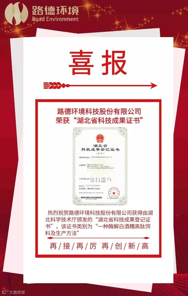热烈祝贺路德环境科技股份有限公司荣获“湖北省科技成果证书”