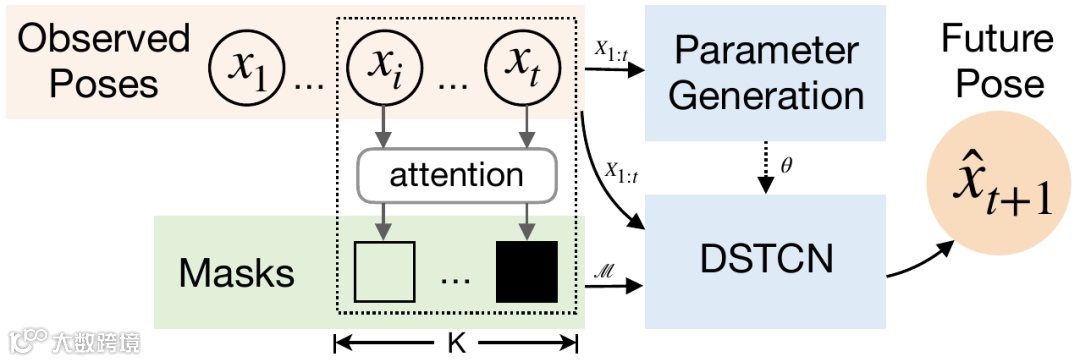 在人体运动预测是任务中,我们根据过去的观察结果来预测未来的运动。以往的方法依赖于获取骨架数据的大数据集,因此很难在有限的训练数据下推广到新的运动动态。在这项工作中,作者提出了一种新的方法,命名为运动预测网络(Motion Prediction Network,简称MoPredNet),用于少短(few-short)人类运动预测。MoPredNet可以适应使用有限数据预测新的运动动态,并且它能够捕捉运动动态的长期依赖性。具体来说,MoPredNet动态地选择流式运动数据中信息量最大的姿势作为掩蔽姿势(mask poses)。此外,MoPredNet通过从观察到的姿态和掩蔽姿态中自适应地学习时空结构,提高了运动动态的编码能力。作者还提出基于积累的运动经验和有限的新型运动动态数据,使MoPredNet适应新型运动动态的方法。实验结果表明,该方法在运动预测方面较当前最先进的方法取得了更好的性能。