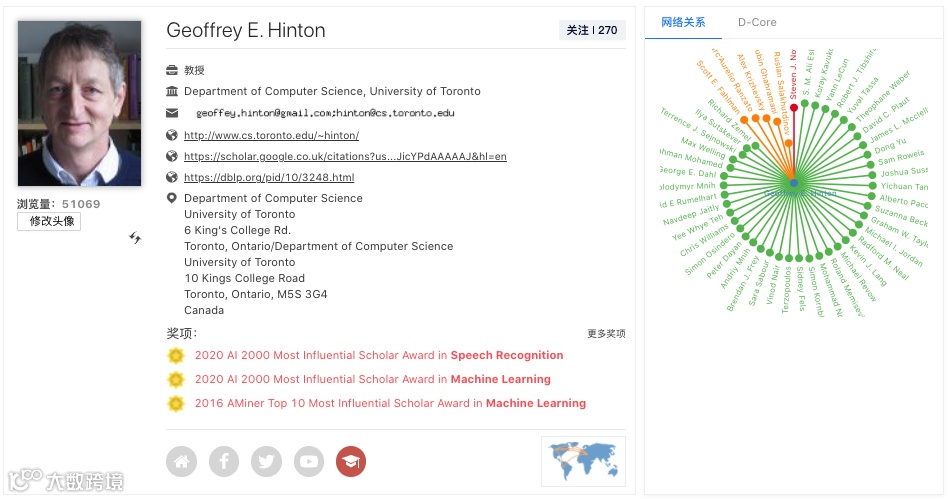 清华AMiner团队发布了AI 2000榜单,参考了过去十年21646位学者在国际会议 Annual Conference on Neural Information Processing Systems(NeurIPS)、International Conference on Machine Learning(ICML)、International Conference on Learning Representations(ICLR) 以及 Journal of Machine Learning Research(JMLR) 发表的20521篇论文的累计引用情况。在机器学习领域中在遴选出了10名【最具影响力学者】,代表了2020年机器学习领域最高学术成果,名单具体如下: