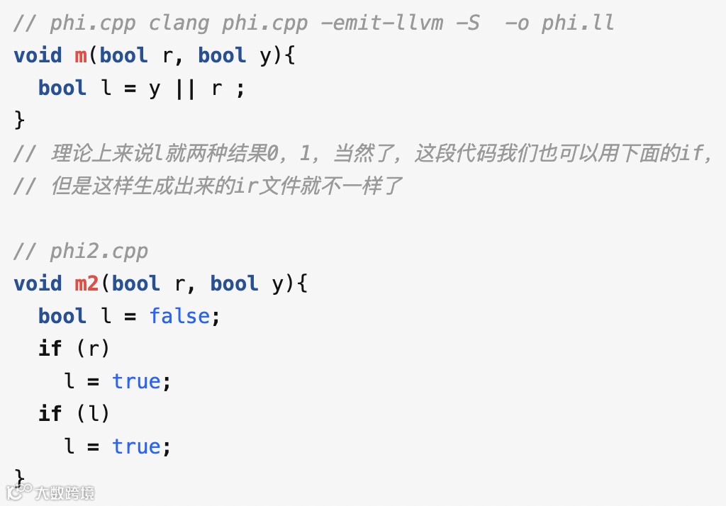 为什么LLVM里面需要有PHI指令呢,由于上次讲到LLVM的IR是基于SSA,每个变量只能被赋值一次,因此PHI指令用来处理一些带条件的跳转情况是非常好用了。