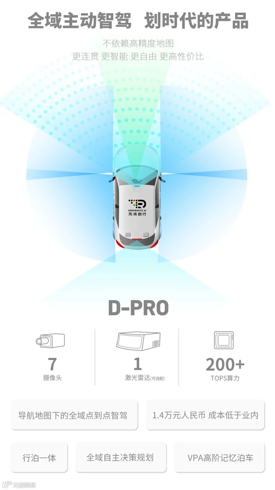 D-PRO——全域高阶智能驾驶产品,在导航地图覆盖范围内,实现全域点到点的智驾功能。除了高、快速路,D-PRO在拥堵的城市复杂路段,也能自主进行路线和驾驶决策规划,自主完成智能、安全的驾驶操作。让智驾功能真正实现随时随地,即开即用。D-AIR——高级辅助驾驶,更聚焦于性价比的诉求,具备ACC、LCC、ILC、APA、AEB等辅助驾驶功能,市场价格仅为同性能和功能产品的80%。目前,D-AIR的硬件成本为7000元人民币,D-PRO的硬件成本为1.4万元人民币,投入市场后,二者都能进行OTA升级,不断解锁新功能,持续提升驾驶能力。