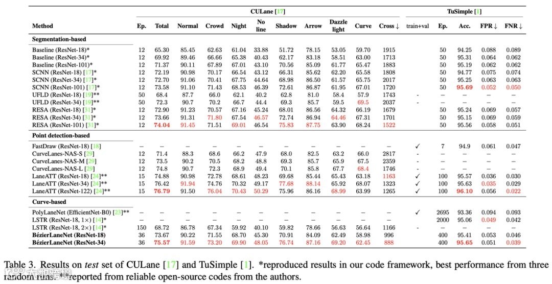 作者在TuSimple(见上表)、CULane(见上表)、LLAMAS(见下表)等数据集上均做了对比实验
