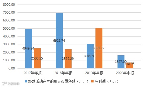 2017-2020年上半年,路德环境净利润分别为2505.55万元、2379.29万元、5051.77万元和718.95万元。盈利规模不算很大,但是现金流量比环保行业内大多数公司要好。相比于净利润,经营活动现金流量净额能够更好反映公司的盈利情况和议价能力。