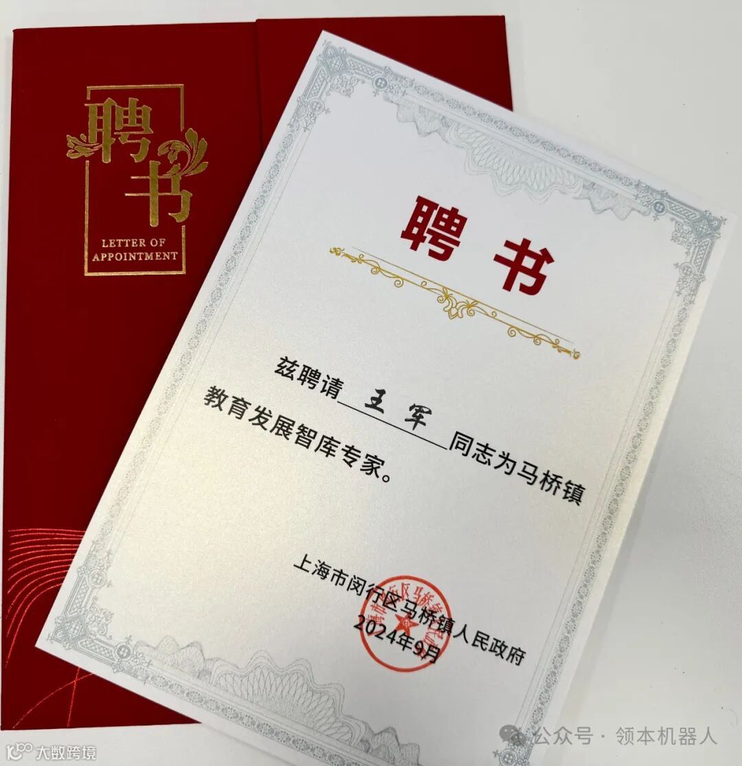2024年9月,领本Ai创始人王军博士,凭借其在人工智能领域的卓越贡献与深远洞察,正式被上海市闵行区马桥镇人民政府特聘为马桥镇教育发展智库专家。这一殊荣不仅是对王军博士个人专业成就的高度认可,更是对领本AI在推动教育智能化转型道路上不懈努力的肯定。