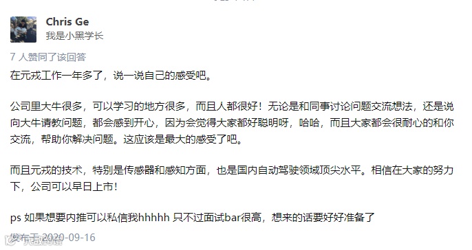 “简单扁平”似乎已成了互联网公司的标配宣传语,但在元戎,的确是能真正感受到的。举个栗子,技术大佬们都没有专设的办公室,你有什么问题随时请教,他们完全没什么架子,超nice
