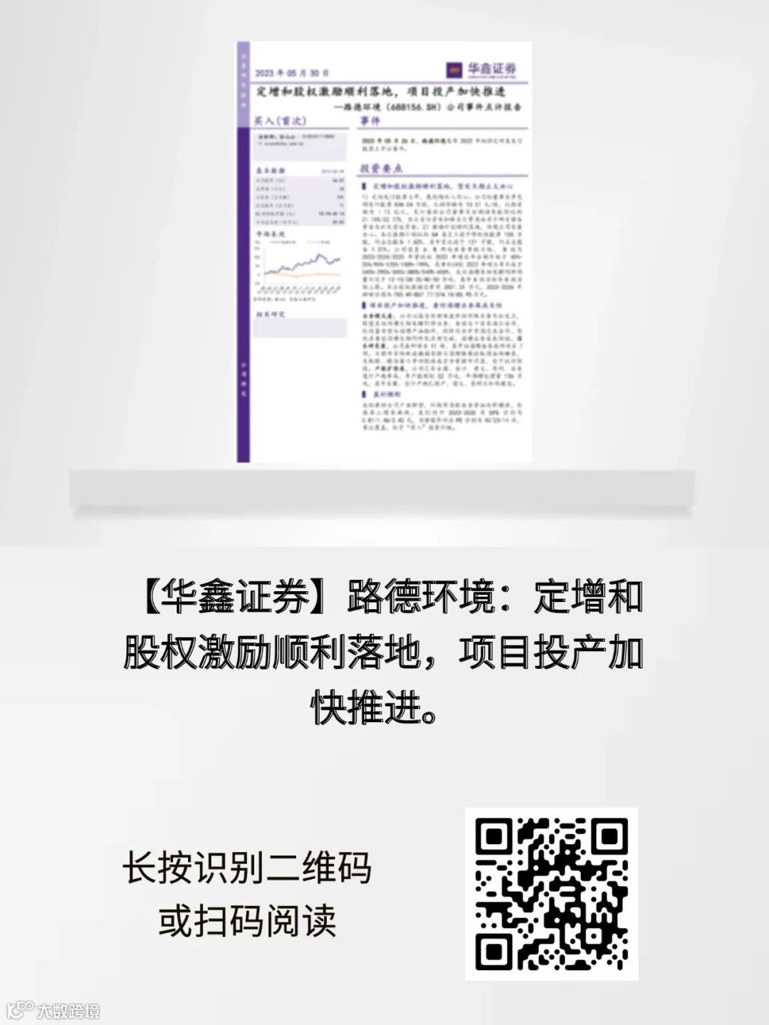 2023年5月26日,路德环境发布2022年向特定对象发行股票上市公告书。华鑫证券发布事件点评报告,首次覆盖就给予了“买入”评级。