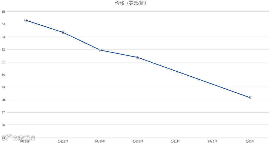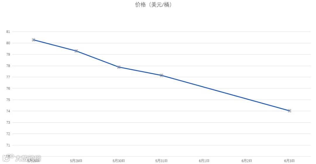 5月28日-6月3日WTI原油价格走势