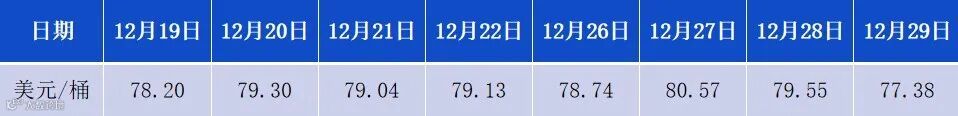 12月19日-12月29日WTI原油价格走势