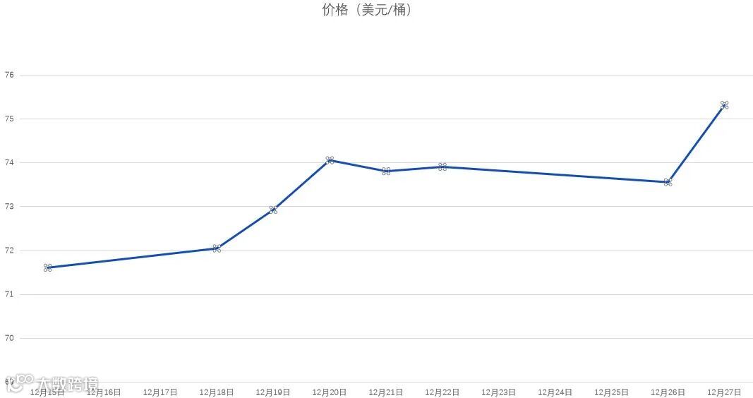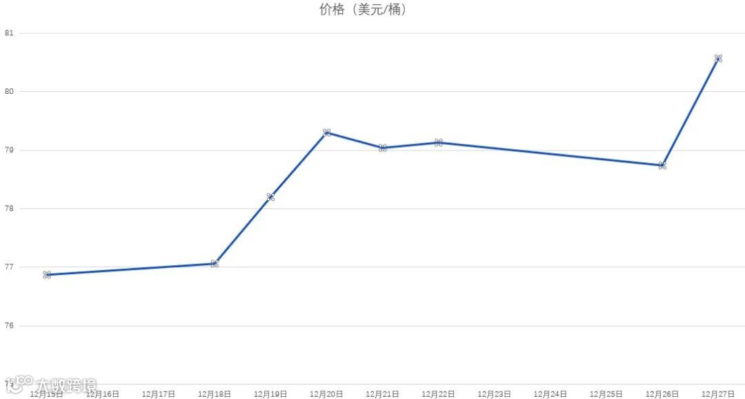 12月15日-12月27日WTI原油价格走势