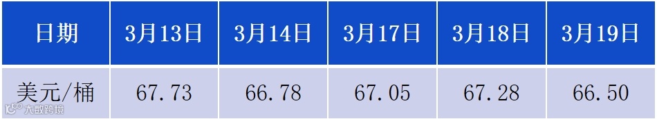 3月13日-3月19日布伦特原油价格走势