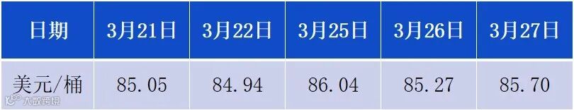 3月21日-3月27日WTI原油价格走势