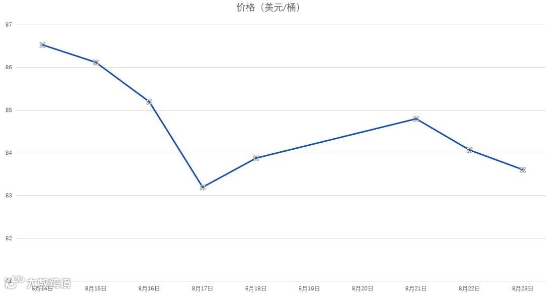 8月14日-8月23日WTI原油价格走势