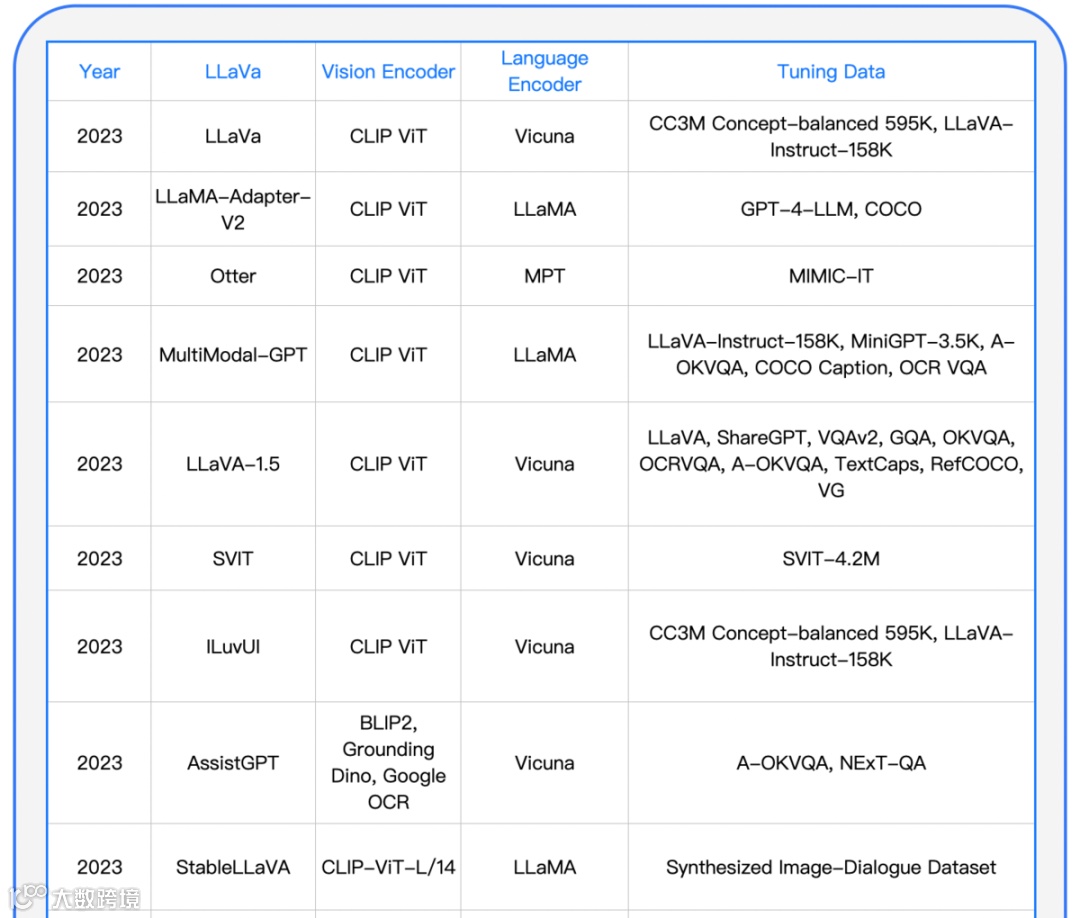 例如 LLaVA 和 MiniGPT-4,它们通过融合视觉和语言信息,能够更有效地完成视觉理解相关的任务。