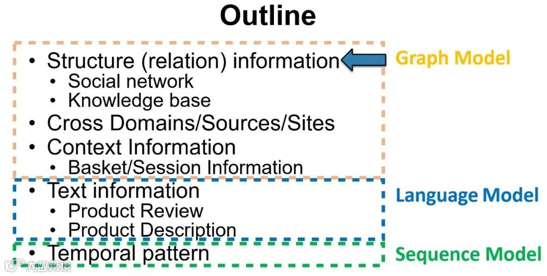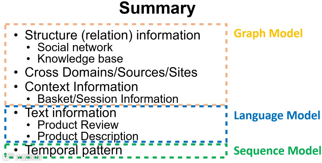 上述数据维度分别可以用图模型(Graph Model)、语言模型(Language Model)、序列模型(Sequence Model)来解决。