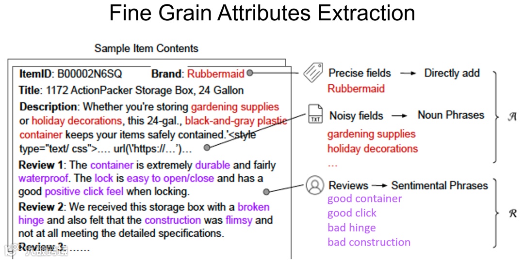 在过往,一个商品的冷启动往往由于缺少已有路径而难以推荐。但分析好文字信息后,我们便可以从商品描述提取关键属性。