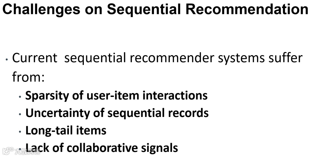挑战:无论是图模型还是序列模型,都很难解决数据稀疏问题:在图模型中,有些用户只与少数商品有连接;在序列模型中,许多用户的购买序列很短。