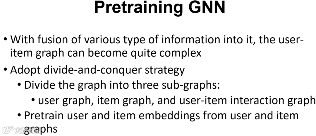 因此,如果只有用户或物品之间的关系,可以首先用 DNN 得到 Embedding,然后将 Embedding 相近的连在一起,这样就得到一个更完整的 graph。