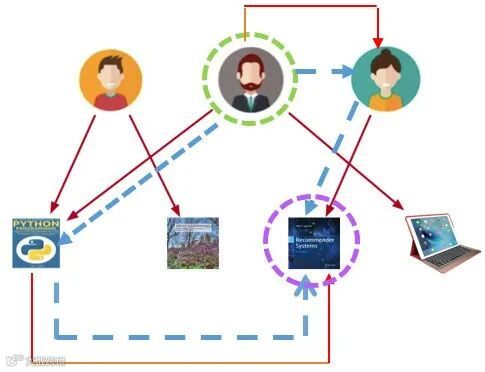 例如,我们可以通过用户之间的共同兴趣找到路径,或者通过共同喜欢的物品建立路径,再或者通过相同作者建立起物品之间的路径。图中的路径越多,我们就越能够为用户推荐更多种类的物品,从而提供更丰富的推荐选项。