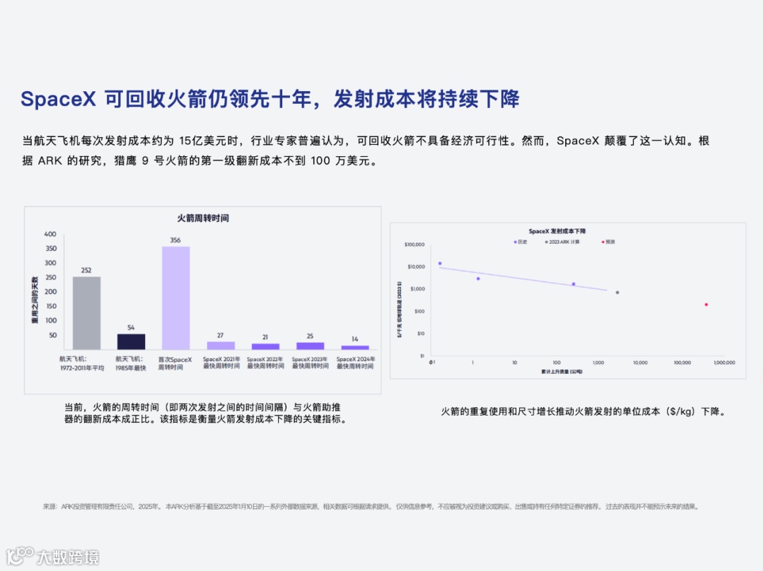 3、可回收火箭章节,主要强调了spacex在可回收火箭方面领先市场十年的地位。另外,spacex通过星链扩容,已经开始有实际收入了。