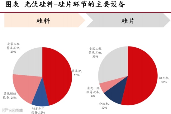 主要设备包括单晶炉(含坩埚组件)、切片机、开方机/磨面机、分选机等。