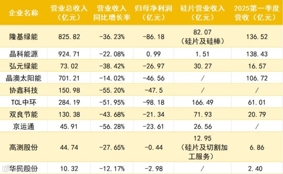 核心矛盾:价格低迷(全年硅片均价同比下跌约 35%)与产能过剩(行业总产能超 1.2 TW)的双重挤压,导致企业生存图景两极分化。