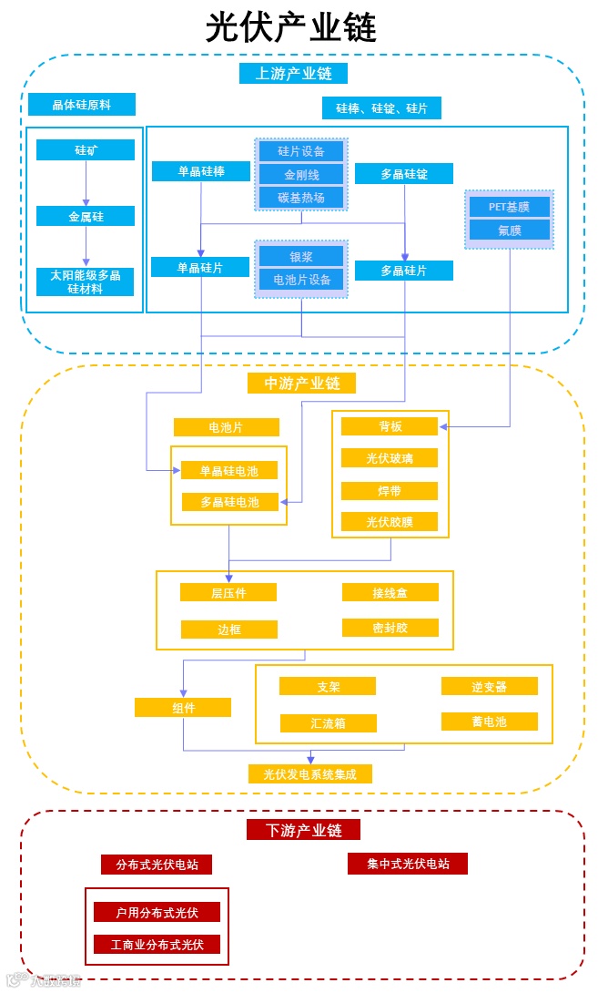 光伏产业链上游以硅基材料制造为核心,涵盖硅料提纯、硅片切割及关键辅材生产,具体包括: