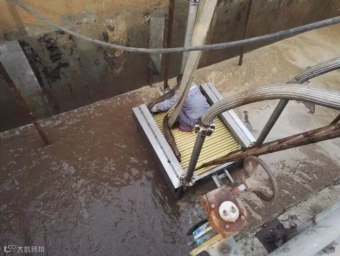 三菱MBR膜组件吊装进膜池(接上进水管及产水管后,整个膜组件安装完成)