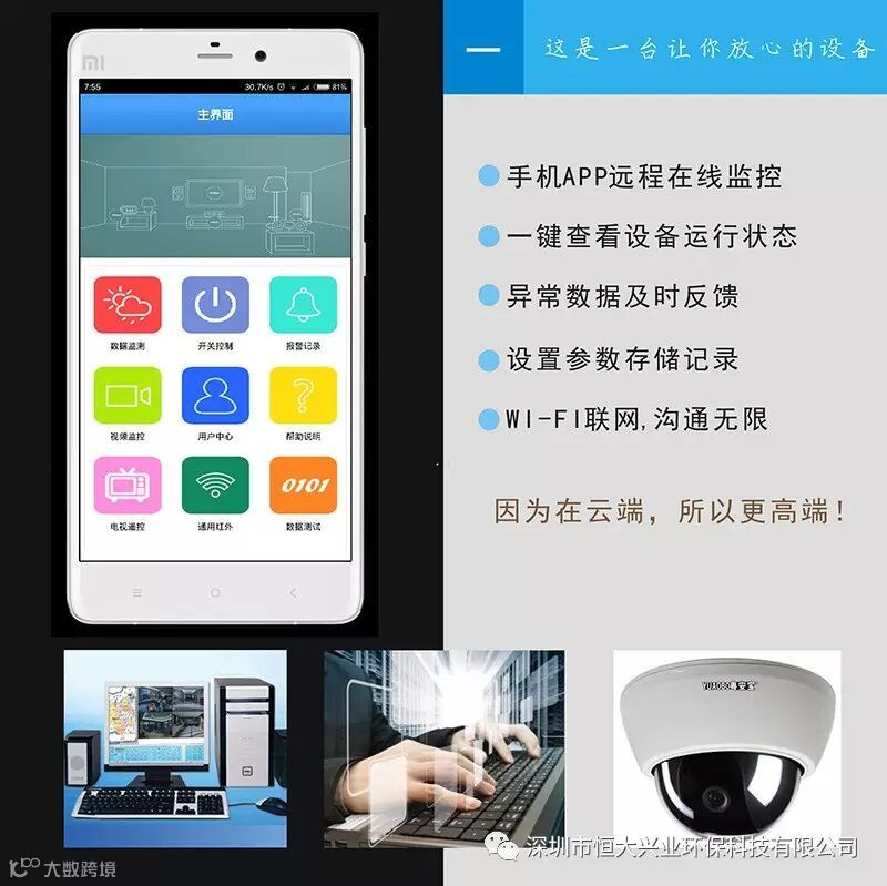 该套设备还有另一个亮点即“云控制系统”,它可以实现手机APP远程在线监控,一键查看设备的运行状态,运行出现状况及时包报警及反馈给管理者,轻松实现设备的运行管理。