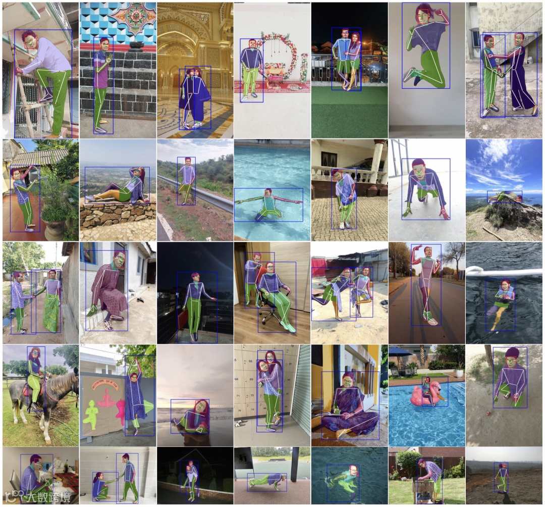 图|FHIBE 图像示例,包含详细的像素级标注、关键点、分割掩码和边界框。