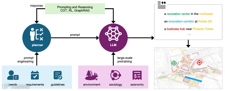 近年来,以生成对抗网络(GANs)和强化学习(RL)为代表的传统AI模型开始应用于城市规划,在生成街道网络、功能分区等方面展现了潜力。但这些模型通常是为特定任务设计的,知识面狭窄,难以应对现代城市规划与日俱增的跨学科复杂性。大语言模型(LLM)的出现,以其强大的知识整合、逻辑推理和多模态生成能力,为突破这一瓶颈带来了历史性机遇。