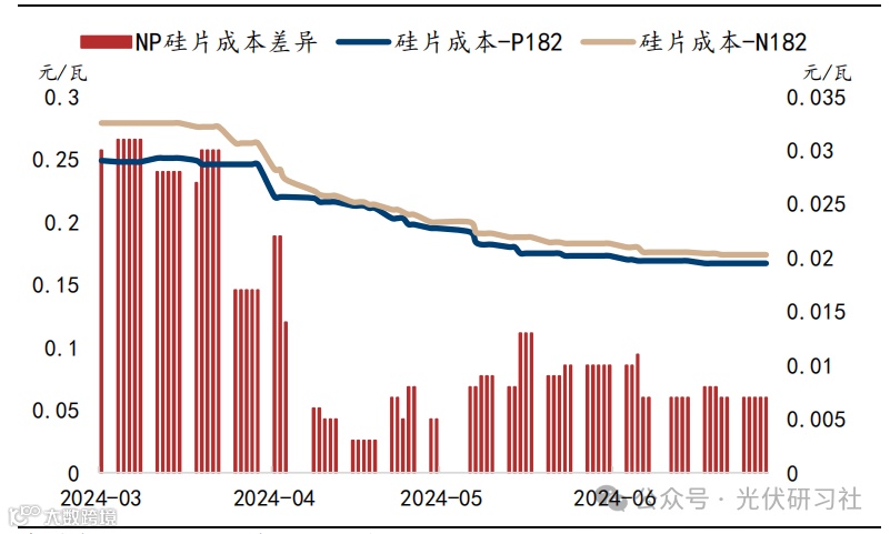 P 型 182 硅片与 N 型 182 硅片成本差异缩窄