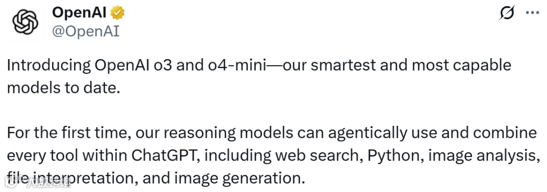 OpenAI CEO 山姆・奥特曼表示,o3 和 o4-mini 功能非常强大,尤其擅长多模态理解,并且可以组合使用 ChatGPT 中的所有工具。另外,o4-mini 的价格非常划算。