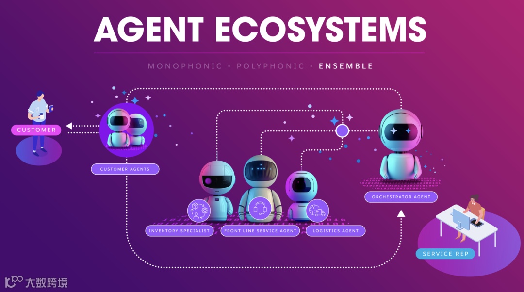 在 agent 演变的第一阶段,专业 agent 擅长特定行业中的特定任务,为常规但关键的业务运营带来更高的效率和准确性。它们代表了企业人工智能采用的基础,以一致性和速度处理离散任务,从而转变部门工作流。它们还擅长提供人工智能迄今取得的进步所带来的好处,如预测下一个最佳行动和产品推荐,根据每个客户的偏好和行为进行高度个性化。此外,它们还能为客户、服务人员和销售代表——无论是人类还是机器人——提供最高水准的生成指导、营销语言和通信。