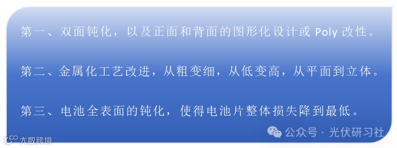 除此之外,业界有声音认为BC组件比TOPCon阴影下表现更好。对此,钱晶表示,首先阴影下性能和弱光性能不是一个概念。阴影是指组件局部遮挡,有的受光,有的不受光,不受光地方温度就会升高。而友商的BC组件实现电池片级别的等效二极管保护效果,不同与常规组件是整一片组件单纯设置三个二极管。可以想象为,BC组件是在每个电池旁设有开关,阴影了就断掉开关,不影响其他电池。其实应用场景非常有限。即使屋顶应用场景,也只是在屋顶边缘可能碰到。不过针对该弊端,通常在项目设计时就会考虑避开阴影遮挡。第二点,每个电池边上加开关,经常一开一关更容易造成损害,加速衰减。针对于此,目前尚未有可靠性权威报告能证实这样的设计不会对电池片造成影响。当外界保持对光伏技术此起彼伏热议之时,事实上,2024 TOPCon太阳能电池技术发展趋势研讨会上,包括晶科能源在内的五家头部企业CTO均肯定表示,TOPCon是未来五年的主流技术。最近一两年,新技术的迭代速度很快,整体看,越新的电池、组件,发电量越好。哪怕同样是TOPCon组件进行比较,新的组件对比两年前的TOPCon组件,发电量可能有2-3%的增益。不同技术组件作比较的话,与时间阶段、技术成熟度、产线把控能力都有关系,可能带来差异。对此,钱晶也对技术予以了充分的肯定与自信。“研讨会让行业的方向和路径更明确,大家,不受干扰,持续努力!”钱晶表示,TOPCon不仅仅是主流,是绝对的主流;不仅仅是五年,是目前可预见的、可实现量产级的未来里的底层技术,也就是之后都会围绕TOPCon平台上。过去两三年,N型TOPCon市场份额快速提升,达到50%、60%甚至更高,离不开供应链的支持。预计两年左右,TOPCon单结电池完全可能实现27%量产效率,未来还将朝28%以上效率目标不断迈进,CTM也将不断改善。BC只是一种电池结构上变化,把栅线做到背面,就好比一幢楼房里,你把楼梯做在屋子里面还是屋子外面,腾出点屋内面积。但做在外面也有劣势,就是每次上楼你要走到屋外,下雨你还要淋雨。但屋子的好坏还是看每层使用的材料和施工工艺的良率,和楼梯在屋内屋外无关。
