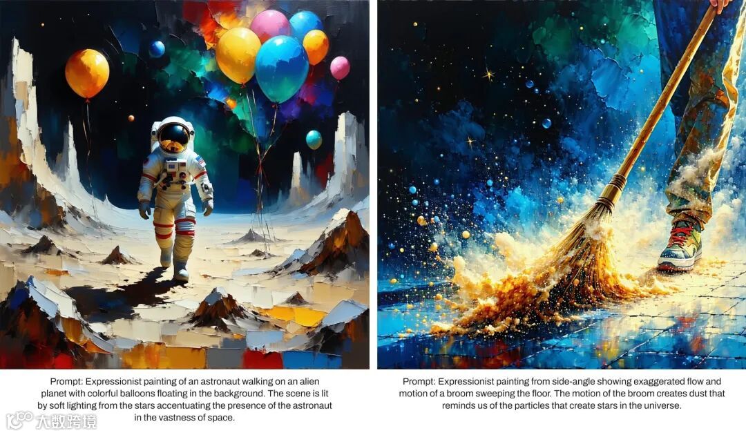 如果想要生成的图片具有主题,则提示应首先强调主题的存在感,然后强调主题随后采取的任何动作。可以参考下面的图片和对应的提示。