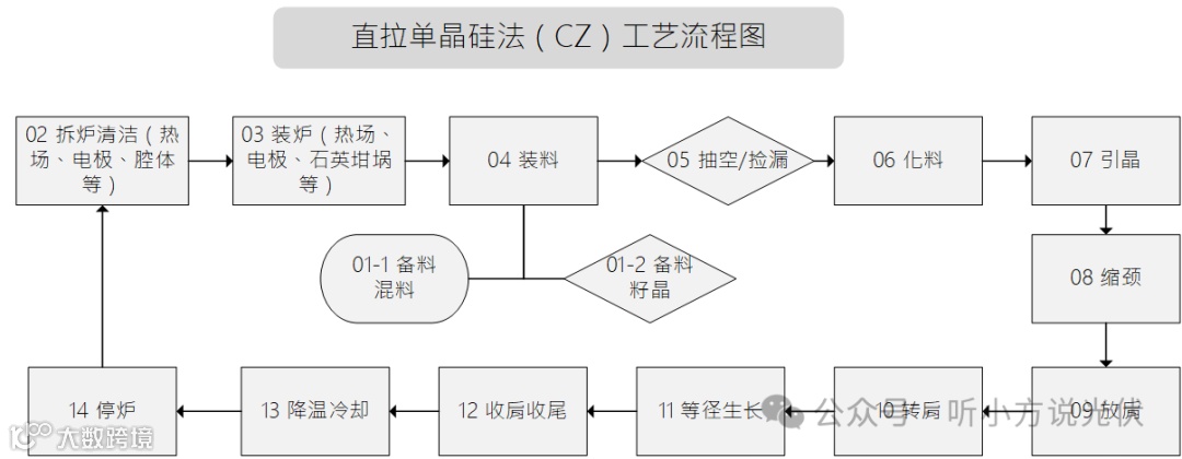 CCZ法:CCZ法拉制过程自动化程度高,减少了人工操作,通过连续加料和改进的热场设计,实现了更高效率的单晶生长。 -