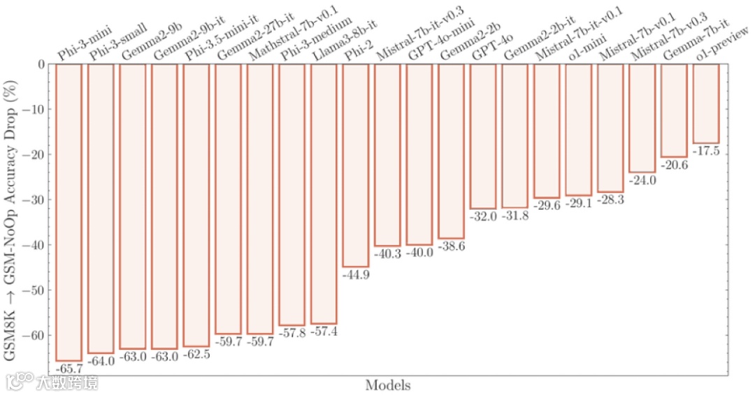 图|通过修改条款数量来修改 GSM-Symbolic 的难度级别