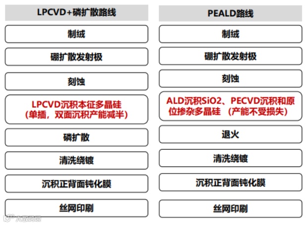 江苏日托于2021年3月申请的专利《一种P型IBC电池的制备方法》,采用P 型硅片作为衬底,正背面均无需硼掺杂,且不需要掩膜和光刻,工艺步骤简单,将传统 IBC复杂的过程(18步)简化为12步,生产成本明显降低。